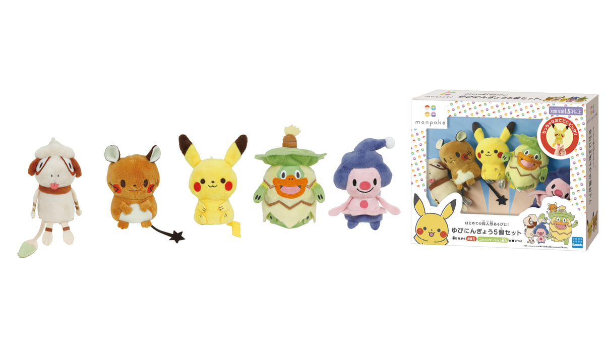 「ドーブル」「マネネ」「ピカチュウ」「ルンパッパ」「デデンネ」をかたどった、木製パズル。