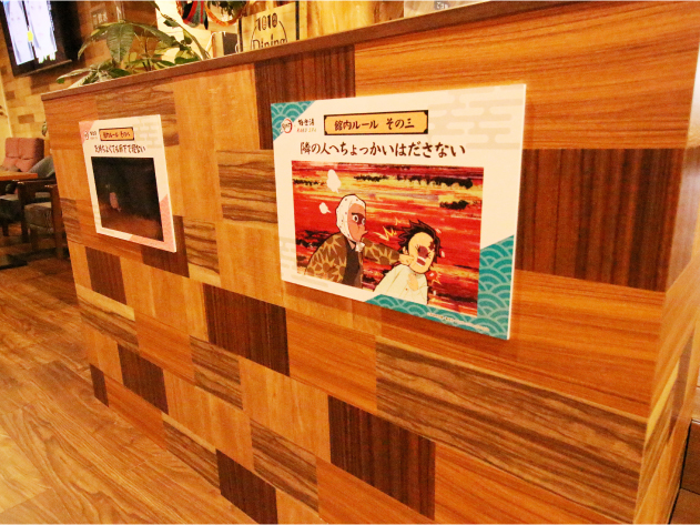 館内ルールも『鬼滅の刃』で楽しく掲示されていて、思わず写真を撮りたくなります。