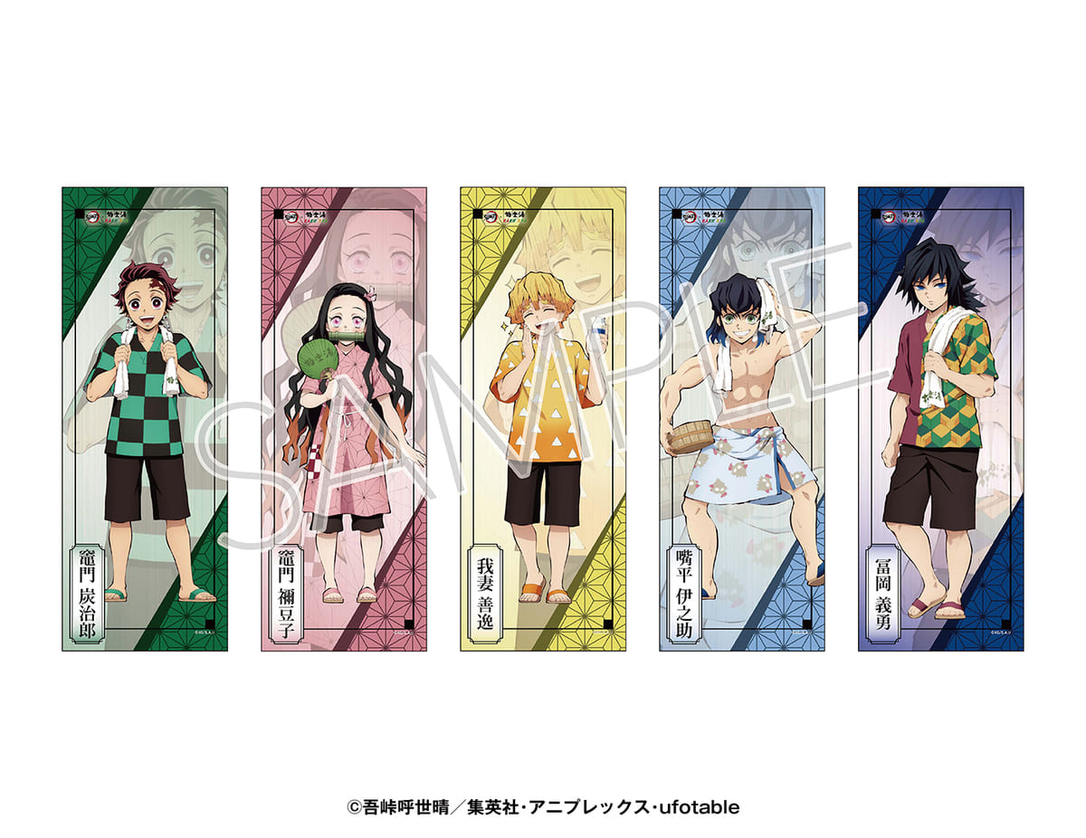 手ぬぐいを巻いた姿やうちわを持つ「禰豆子」などがプリントされた「お風呂ポスター」