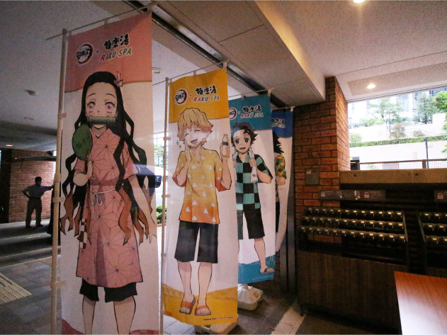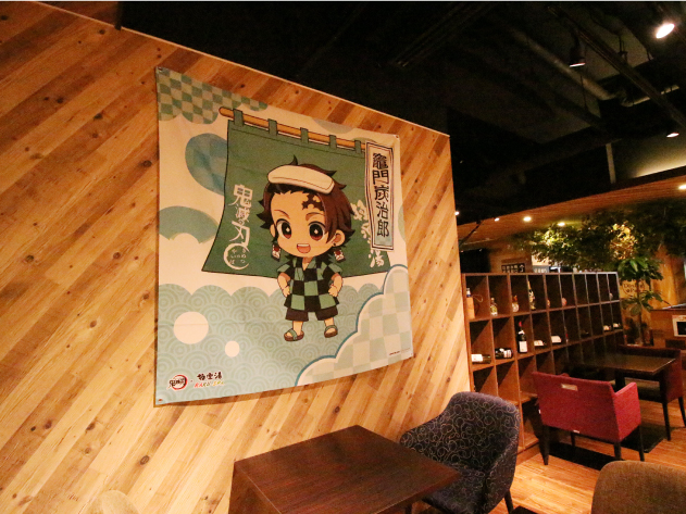 コラボ風呂の期間中は、キャラクターに合わせたパネル、タペストリーも登場です!