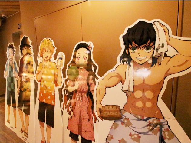 風呂上がり姿の「伊之助」や「善逸」、「冨岡さん」とも写真が撮れます☆