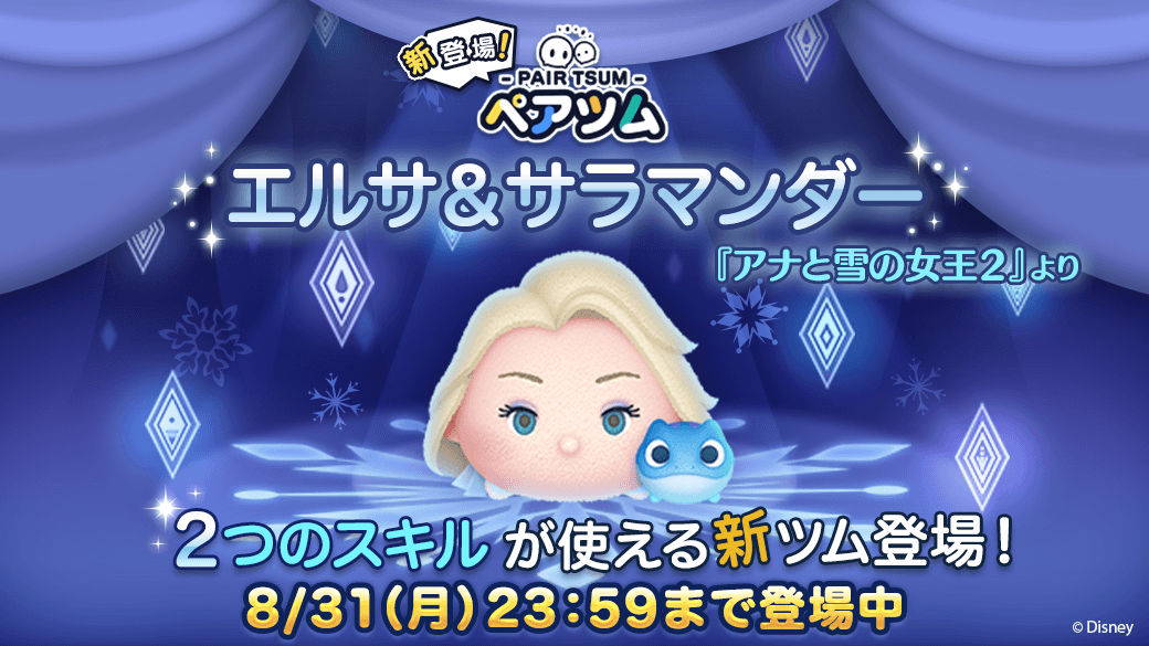 LINE:ディズニー ツムツムに新たに展開される「ペアツム」第1弾ツム「エルサ&サラマンダー」は、2020年8月31日(月)23:59までの期間限定で登場です☆