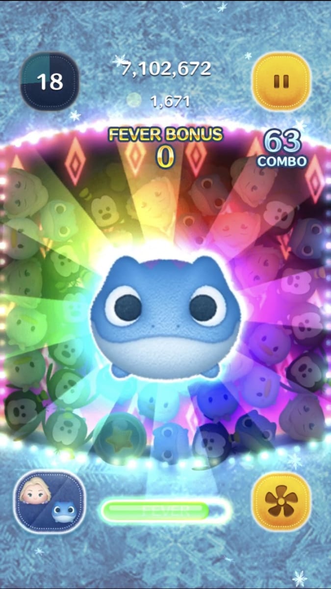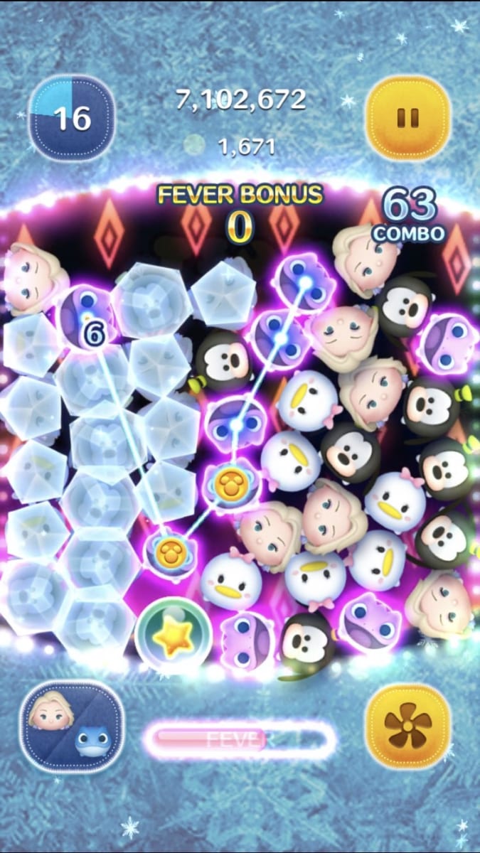 「エルサ」のツムは、つなげたツムと一緒にまわりのツムを凍らせることができます。