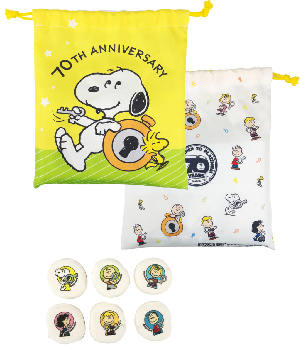 「スヌーピー」とピーナッツのみんながプリントされた巾着袋を開けると、中にはお揃いのデザインのマシュマロが!