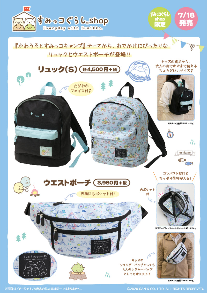 すみっコぐらしshop限定グッズ「リュック(S)/ウエストポーチ」