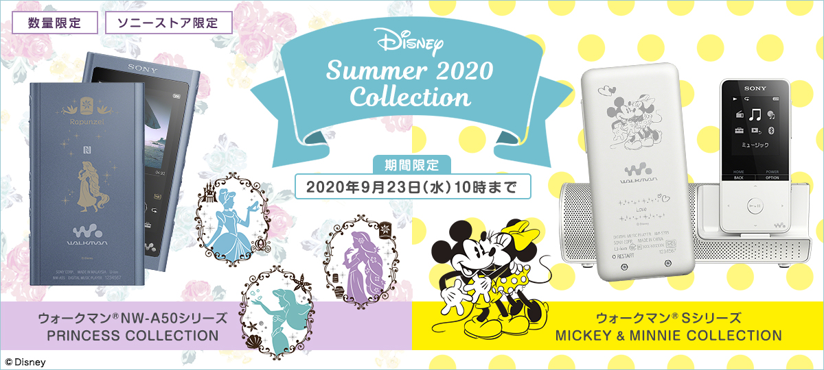 ソニーストアより、ディズニープリンセスをデザインした高音質&ハイレゾ対応のウォークマン NW-A50シリーズと、「ミッキーマウス」と「ミニーマウス」の3種類のデザインの中からお好みのデザインを選んで本体に刻印できるスリム&コンパクトなウォークマン Sシリーズが登場!