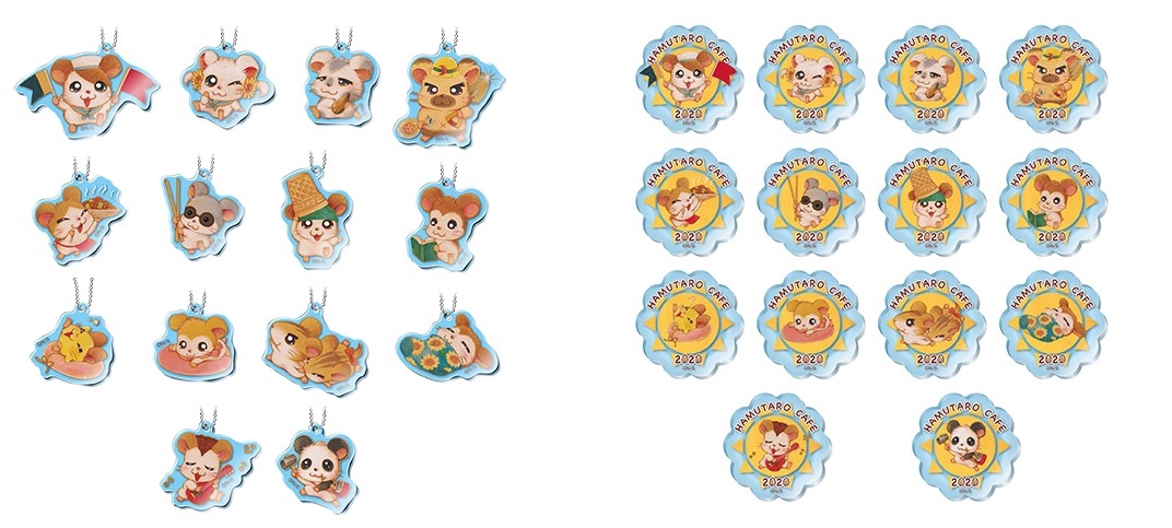 ハムちゃんずのメンバーたちがデザインされた、アクリル素材を使用した「キーホルダー」と「コースター」