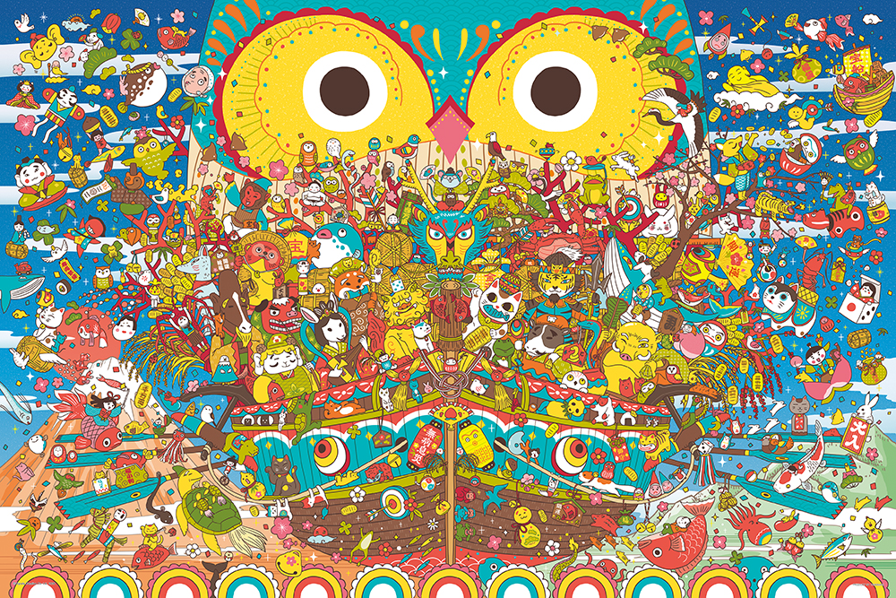 古くから親しまれて来た吉祥モチーフを、むらたももこ氏の手によってかわいくて不思議で面白く描いた宝船のアートがジグソーパズルになりました。