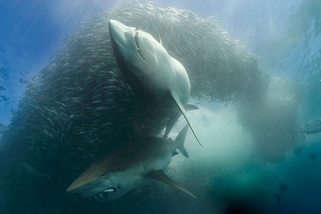 イワシの大群をめぐって他の動物たちと戦う貴重なシーンをカメラにおさめた「シャーク・アレイ~イワシの大群を狙え!」