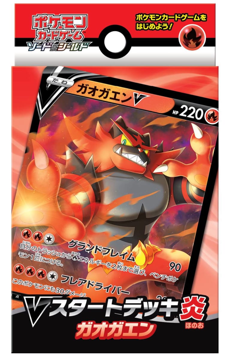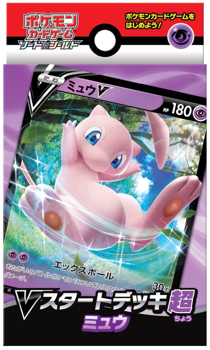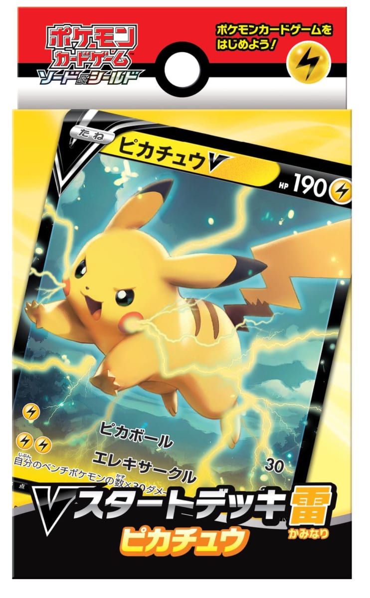 「Vスタートデッキ」は、「ガオガエン」パック、「ピカチュウ」パック、「ミュウ」パック、「イーブイ」パックの4種類から、いずれか1つが封入されています。
