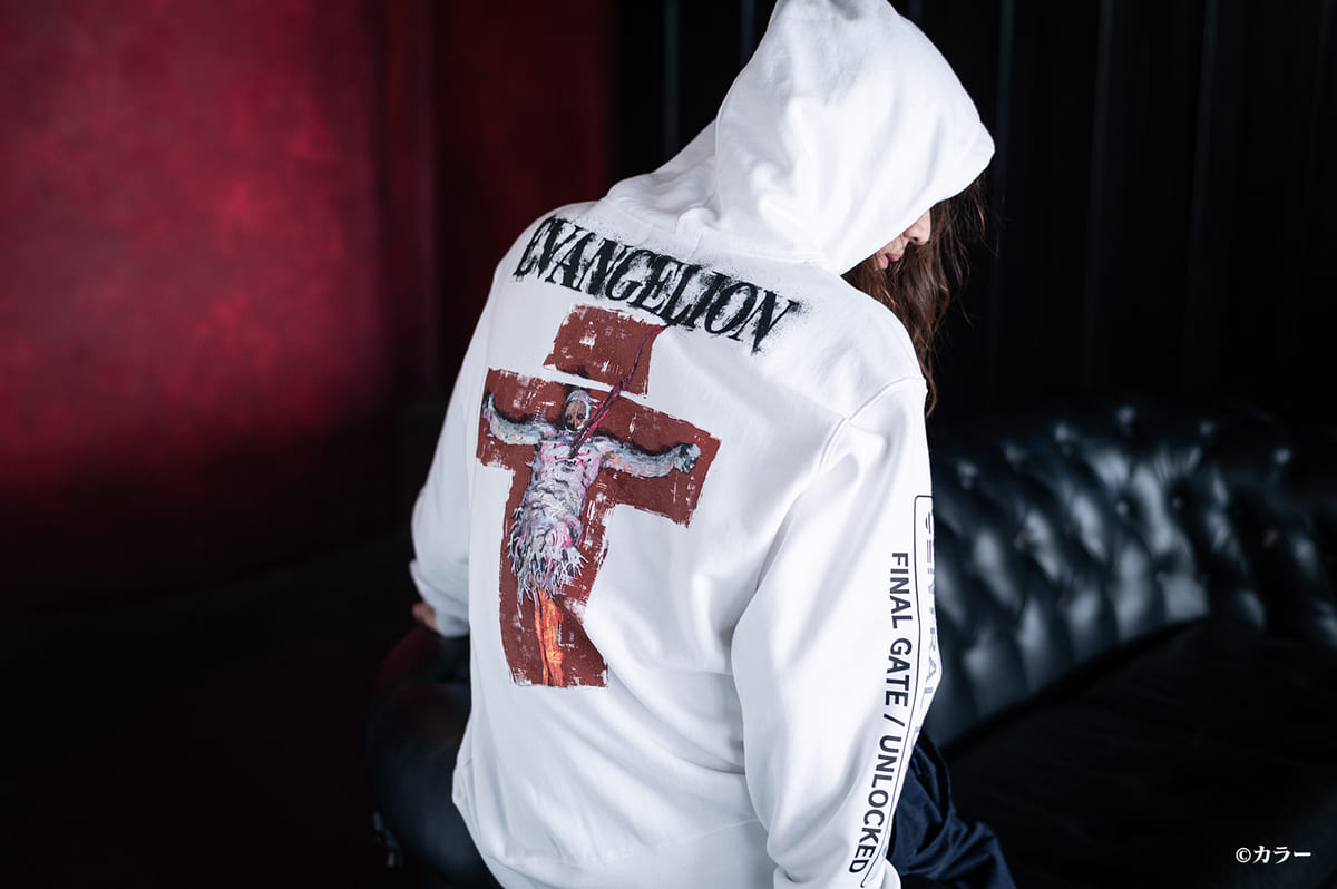 使徒リリスをバックスタイルに描いたフーディは、ストリートファッションに合わせやすいデザインに再構築。