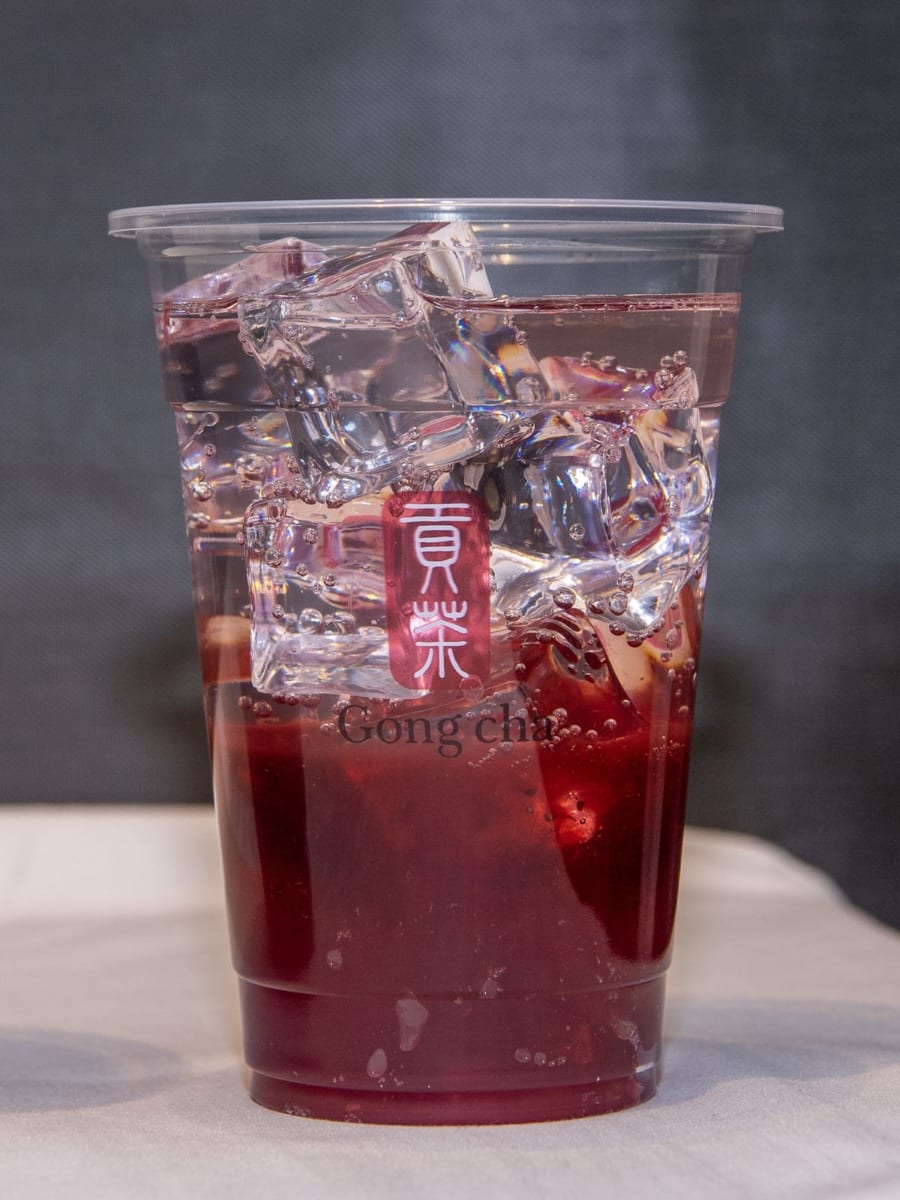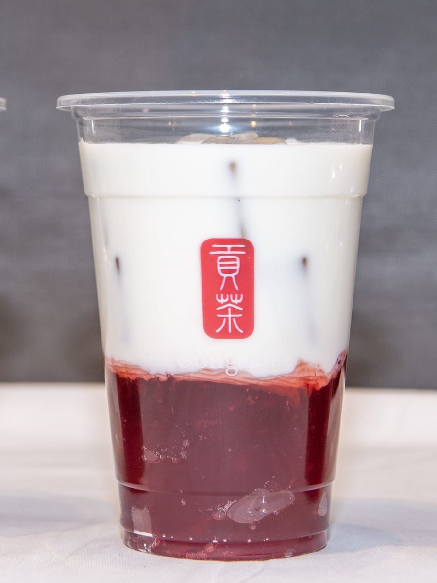 ざくろの美酢にゴンチャオリジナルのストロベリーソースを合わせた「ざくろ(ストロベリー+こんにゃくゼリー)」