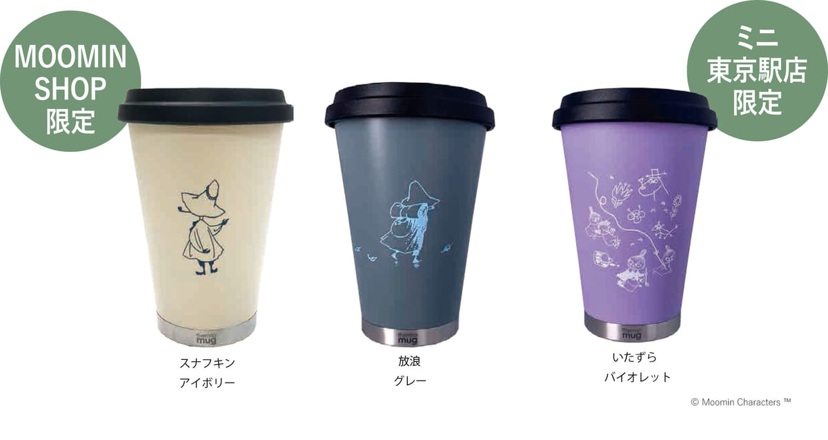 サーモマグモバイルタンブラーミニ スナフキンアイボリー(MOOMINSHOP限定)放浪グレー/いたずらバイオレット(東京駅店限定)