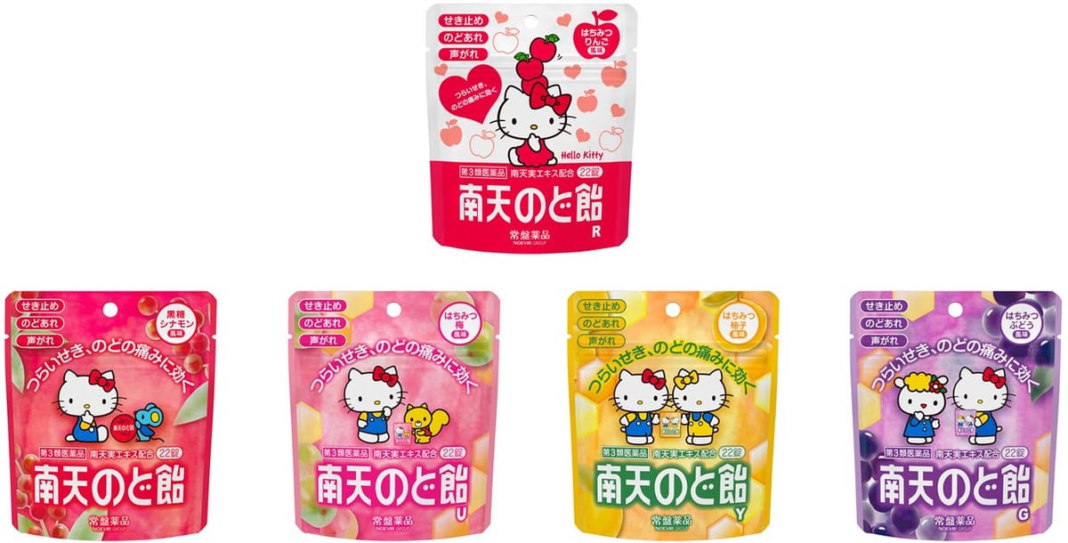 医薬品「南天のど飴」と「ハローキティ」のコラボレーション限定デザインは、薬局、薬店、ドラッグストアなどにて、2020年8月24日に登場します。