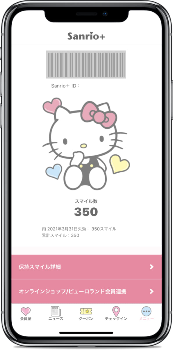 3. 従来のポイントカードサービス「サンリオフレンドシップクラブ」の有効期限内のポイントをサンリオプラスの“スマイル”に移行できます(1ポイント=30スマイル)