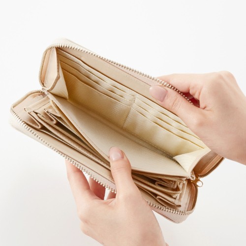長財布には、水濡れやキズにも強い合成皮革素材が使用されています。