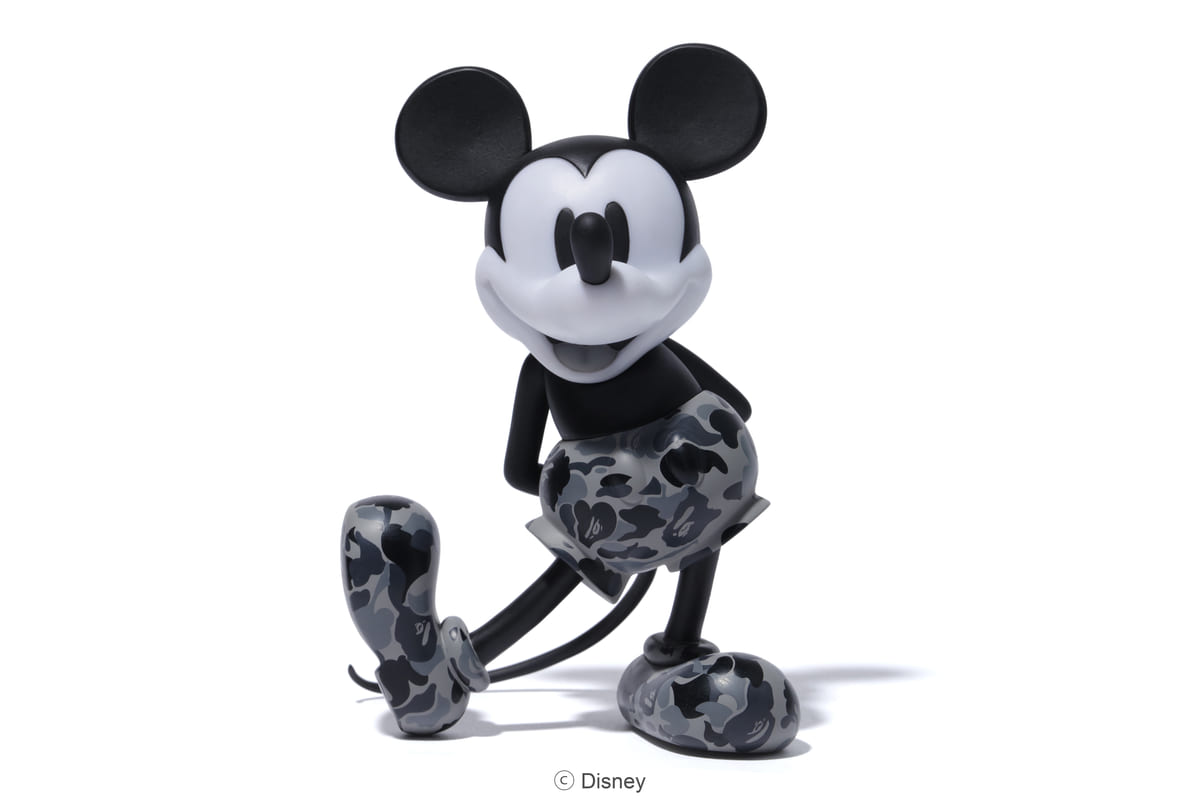 エイプヘッドが落とし込まれた、BAPEオリジナルカモフラージュ「ABC CAMO」をまとった「ミッキーマウス」の姿が楽しめます。