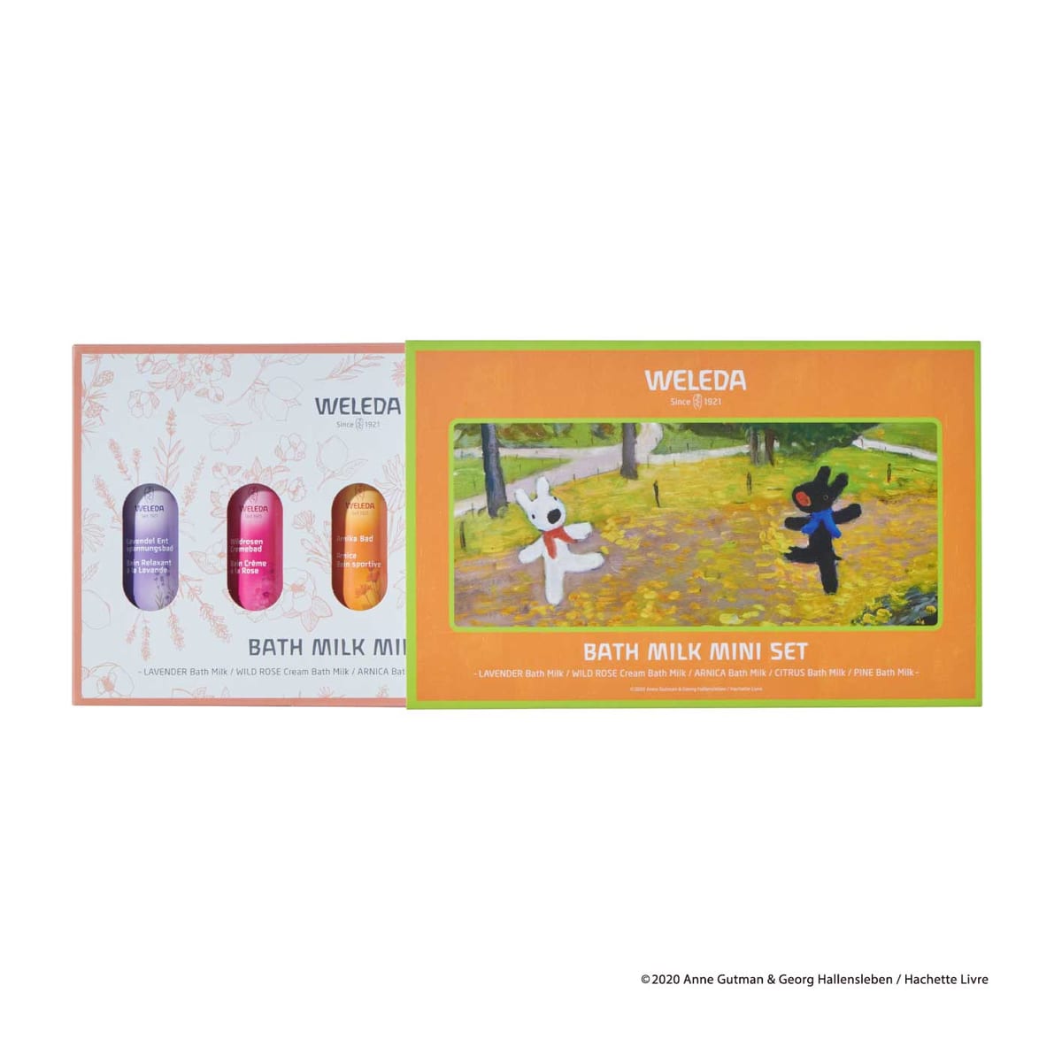 公園で遊ぶ「リサとガスパール」のパッケージもかわいらしい、5つの香りを楽しめるアソートタイプのバスミルク。