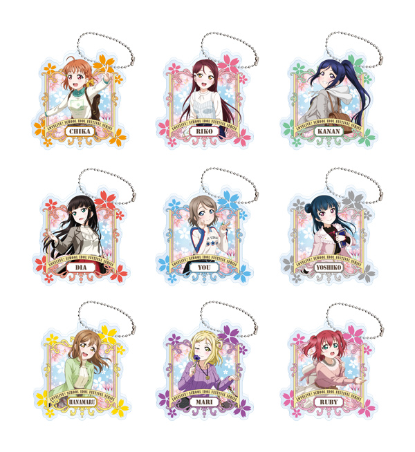 「μ's」メンバーデザインのアクリルキーホルダー。