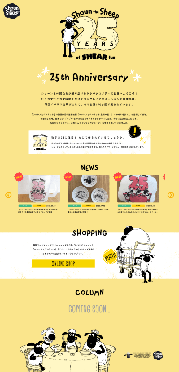 「ショーン」のスクリーンデビュー25周年を皮切りに、大人の女性を含むより多くの方々に『ひつじのショーン』の魅力を届けるために、25周年公式特設サイトには様々なコンテンツが登場します。