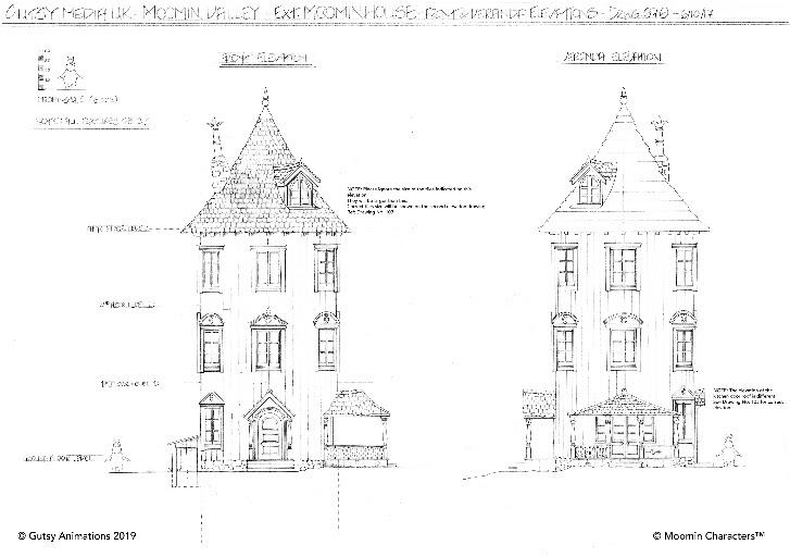 ムーミン屋敷など、アニメに出てくる建物や造作物などの設計資料は計4枚が公開。