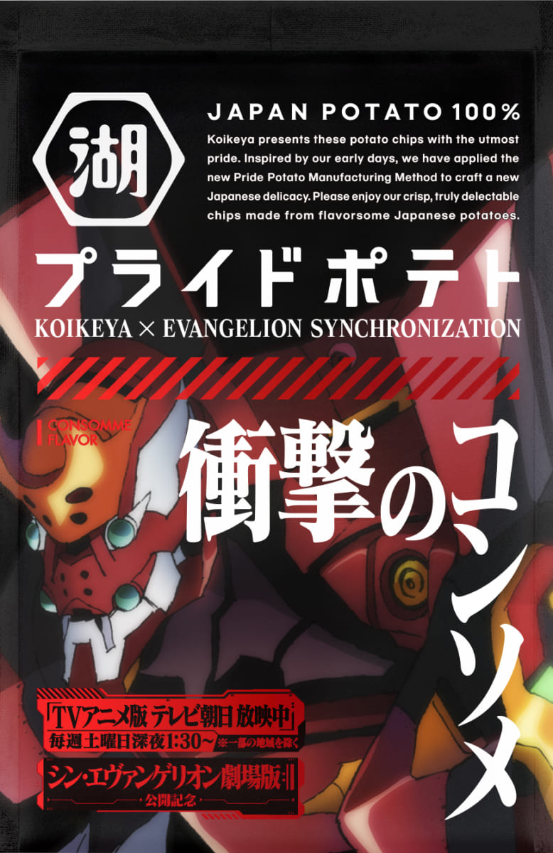 製法にこだわったポテトチップス「プライドポテト」がヒット中の湖池屋と、人気アニメ「エヴァンゲリオン」のコラボレーションが実現!