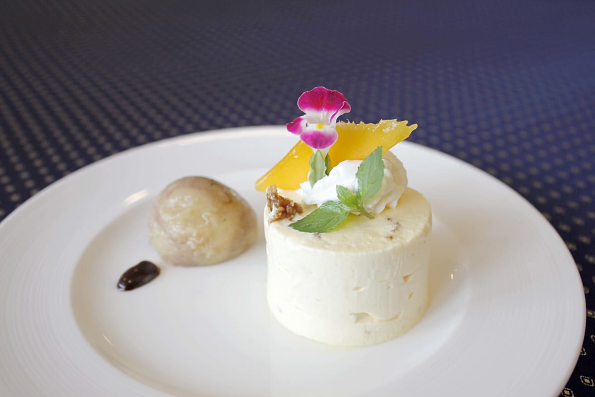 バナナボールとマンゴーのセミフレッド(写真)、ミルフィーユ仕立てのティラミスから選べます。