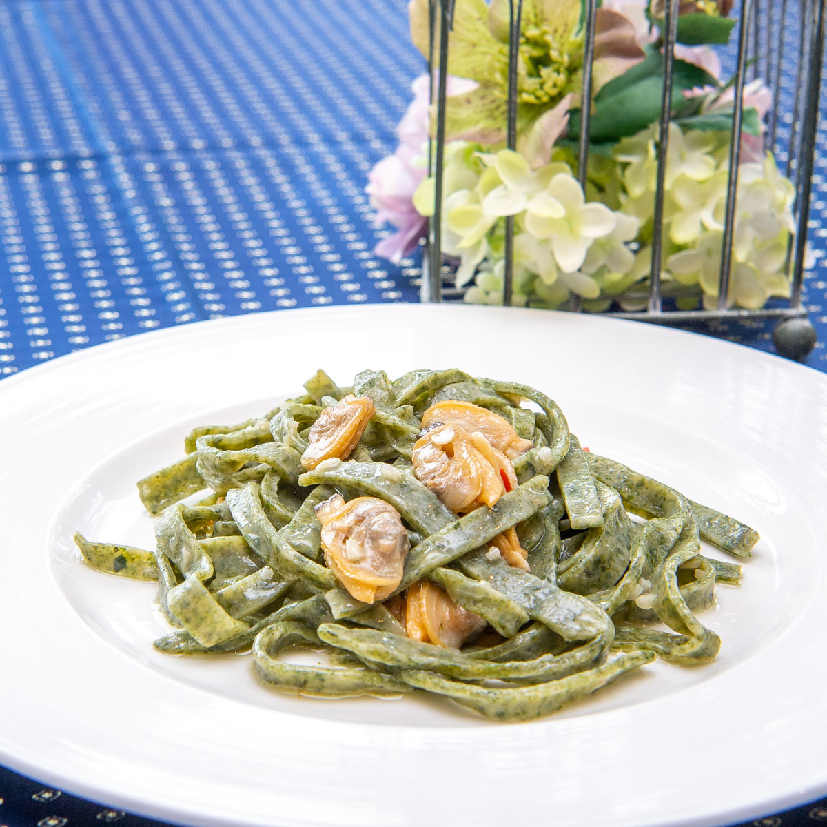 手切りされた青ノリが練り込まれたパスタと、ソースは魚介の味がぎゅっと詰まっています☆