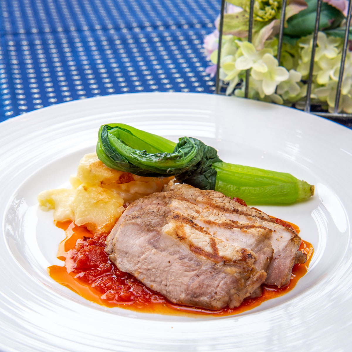 マーガレットポークのグリエ ソースピカンテは、千葉県産の銘柄豚 マーガレットポークを使用。