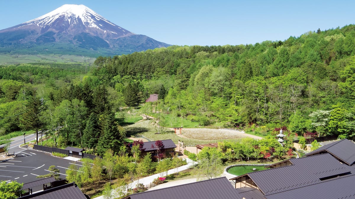 四季折々の情緒ある景色が楽しめる日本庭園内には、雄大な富士山を眺めながら楽しめる足湯や茶処のほか、忍者体験が楽しめる「忍者からくり屋敷」や「忍野手裏剣道場」、「忍者修行アスレチック 忍術皆伝の道」といったアクティビティが揃います。