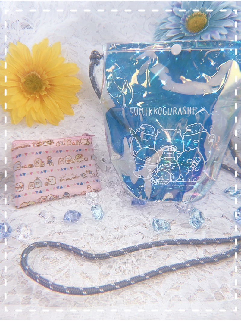 おしゃれなオーロラバッグと小物の整理に便利なミニポーチは、「かわうそとすみっコキャンプ」デザインで夏にぴったりです☆