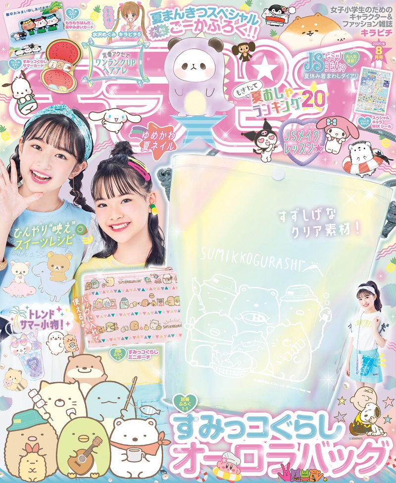 女子小学生のためのキャラクター&おしゃれマガジン『キラピチ』の2020年8月号に、「すみっコぐらし」のオーロラバッグとミニポーチがふろくとして付いてきます!