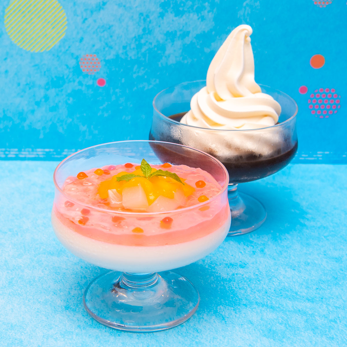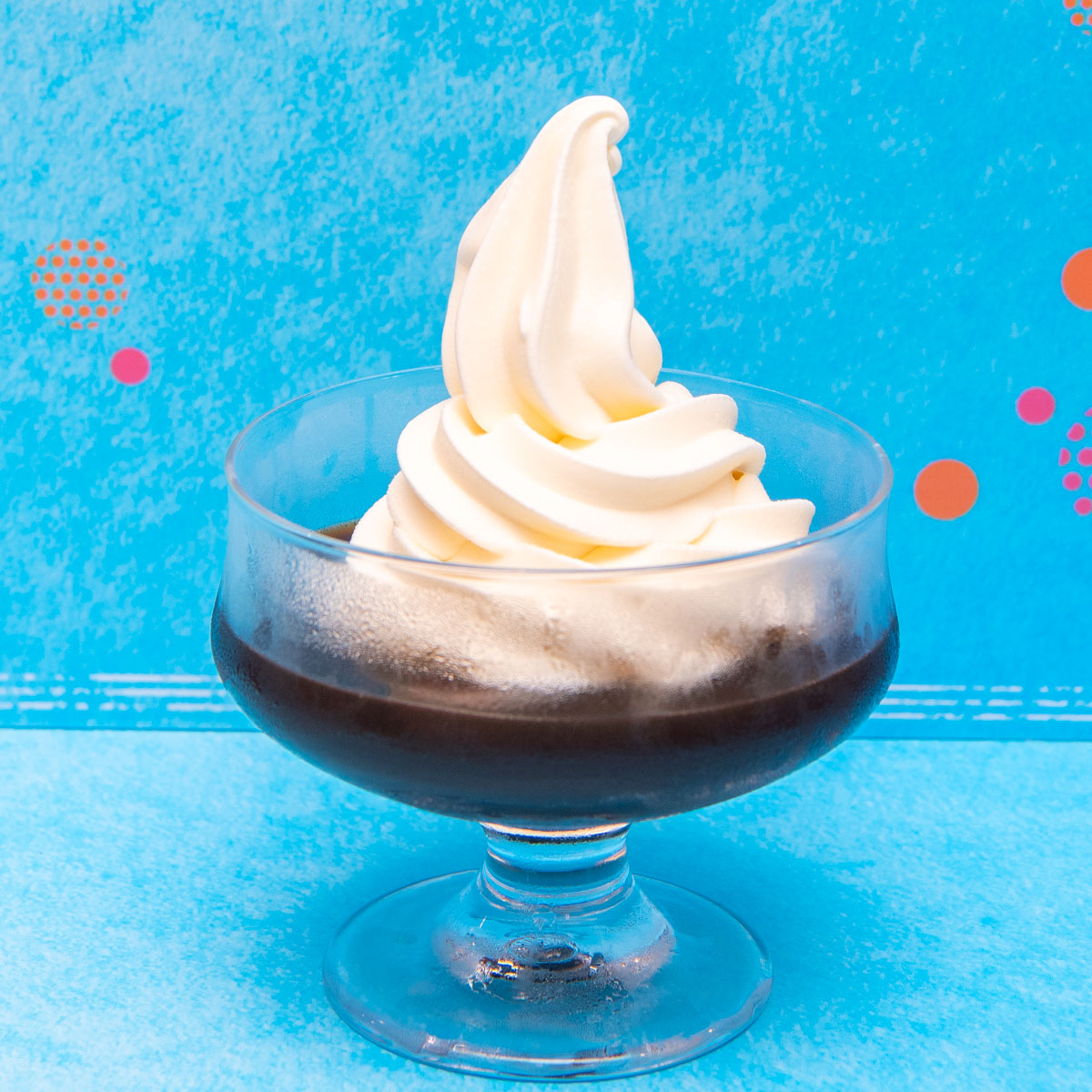 深みのある上品な味わいのコーヒーゼリーに、ソフトクリームをのせたスイーツです。