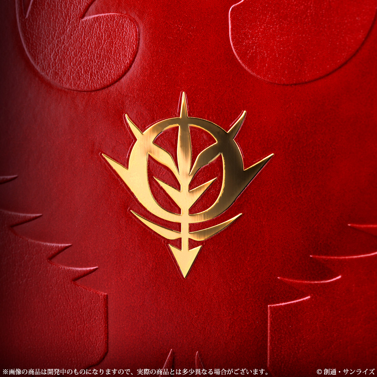 カバーの表面のエンブレム下部には「シャア」の所属部隊番号の“A12”が浮かび上がり、裏面には“Char Aznable”のサインが型押しされています。