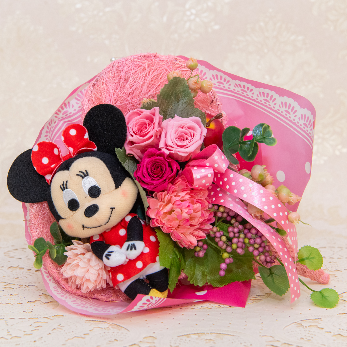 「ミニーマウス」のぬいぐるみがとってもキュートな「ハートフルブーケ/ミニーマウス」