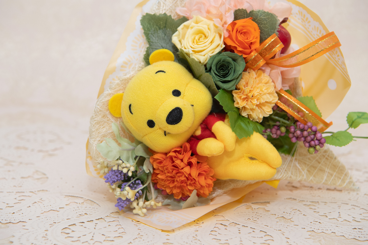 「プーさん」のぬいぐるみに心癒されるキュートな「ハートフルブーケ/くまのプーさん」