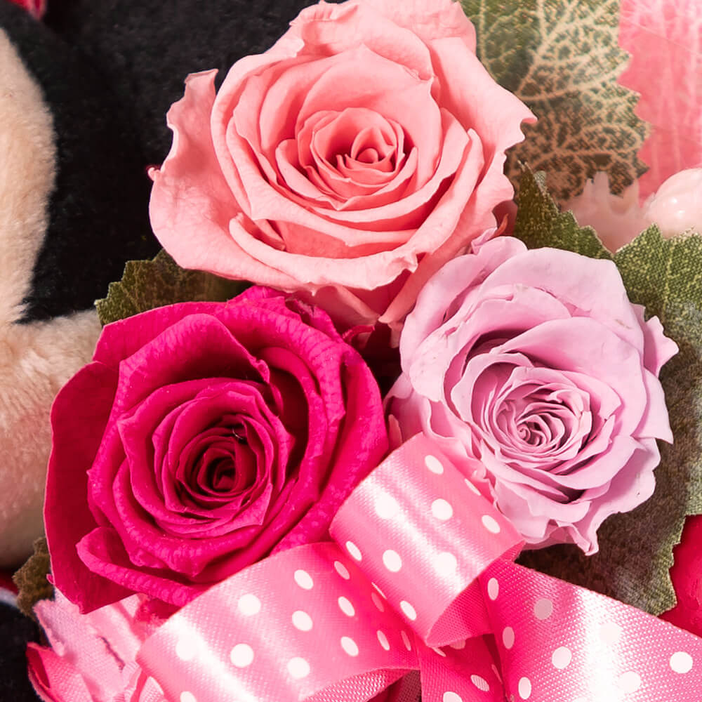 ミッキー、ミニー、プーさんのぬいぐるみ付き!イイハナ・ドットコム ディズニー プリザーブドフラワー「ハートフルブーケ」