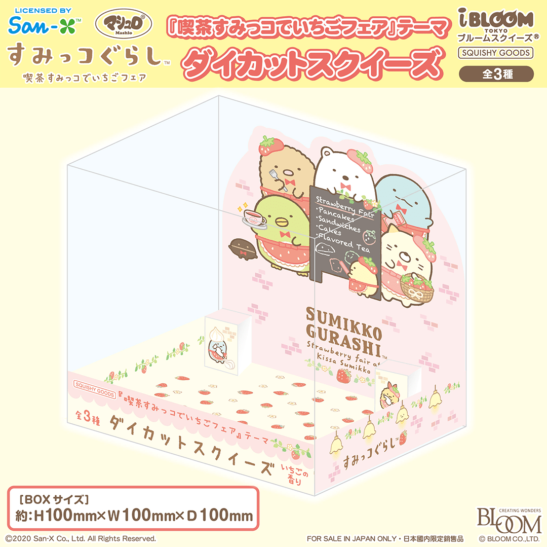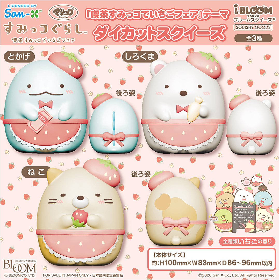 スクイーズのトップブランドBLOOM(ブルーム)から「喫茶すみっコでいちごフェア」デザインの「すみっコぐらし ダイカットスクイーズ」が登場!
