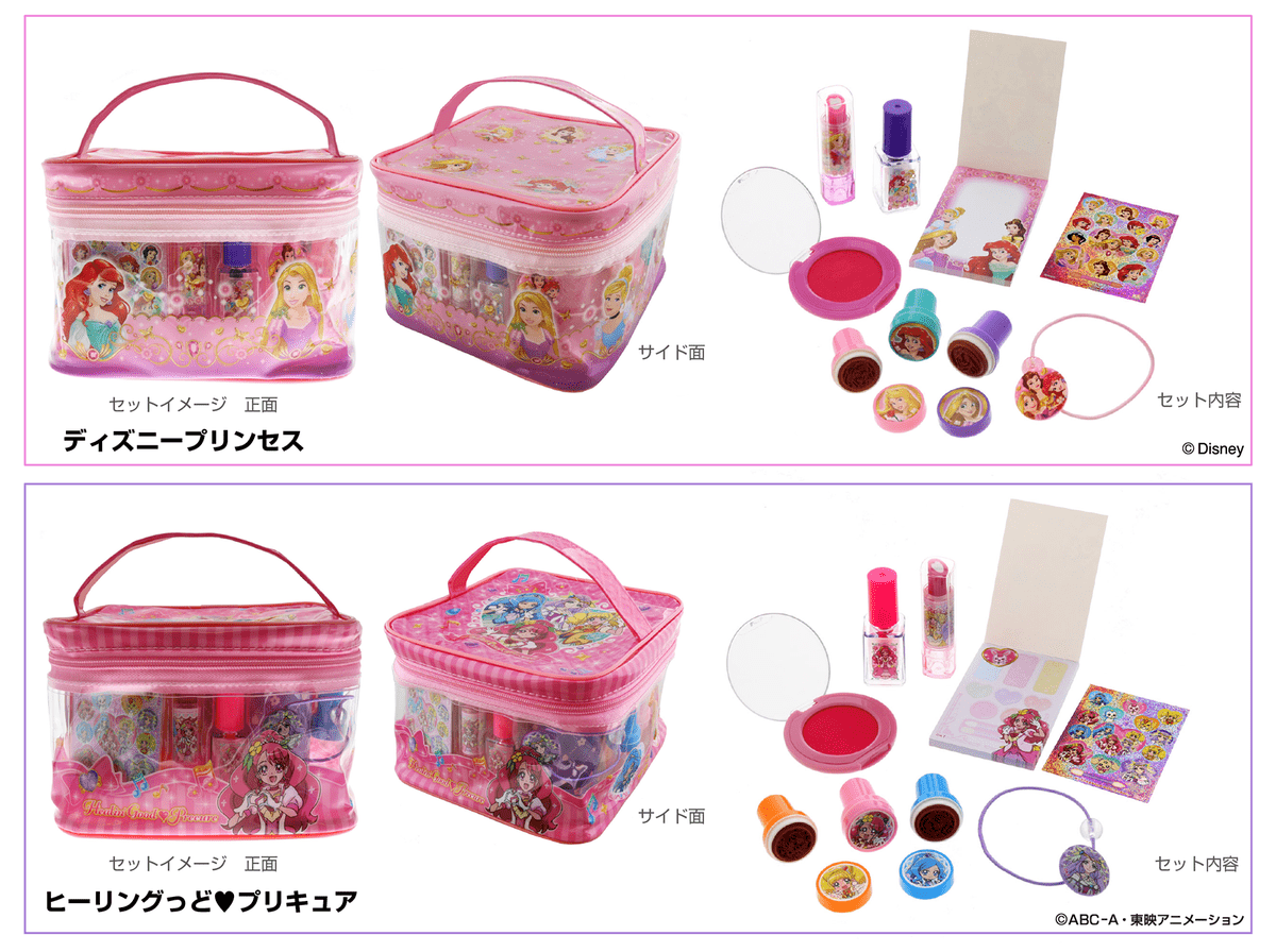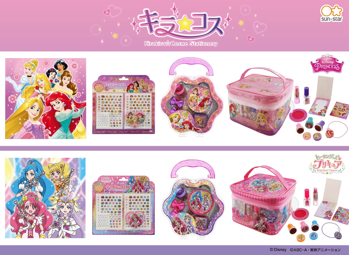 「ディズニープリンセス」と「ヒーリングっど プリキュア」の可愛い2柄!サンスター文具「キラキラ☆コスメステーショナリー」
