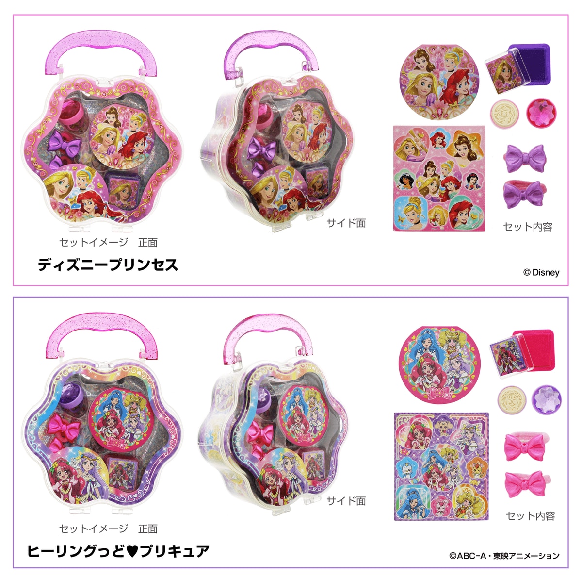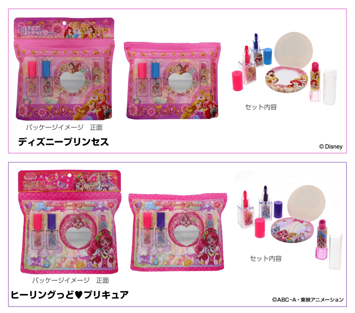 デザイン展開は、女の子の大好きな「ディズニープリンセス」と「ヒーリングっど プリキュア」の2種類。