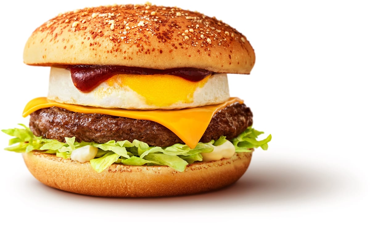 ジューシーな肉厚ビーフパティとたまごの間にとろ~りチーズが絡む相性抜群のおいしさです。