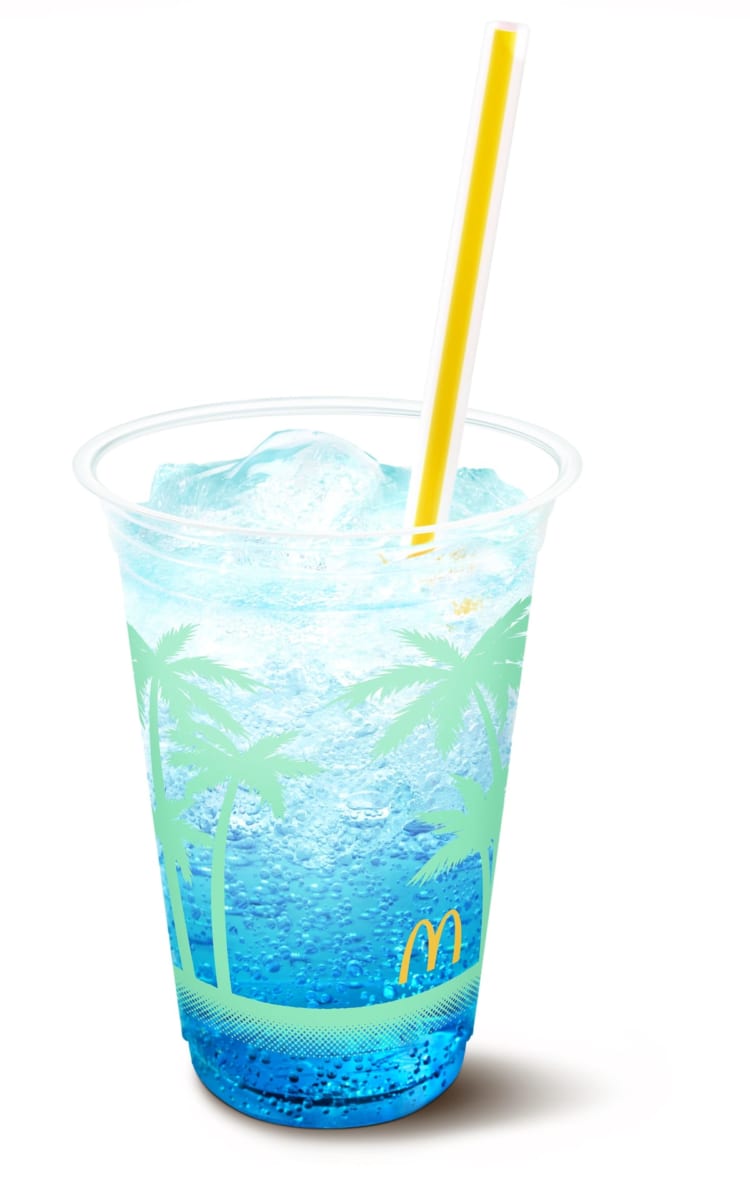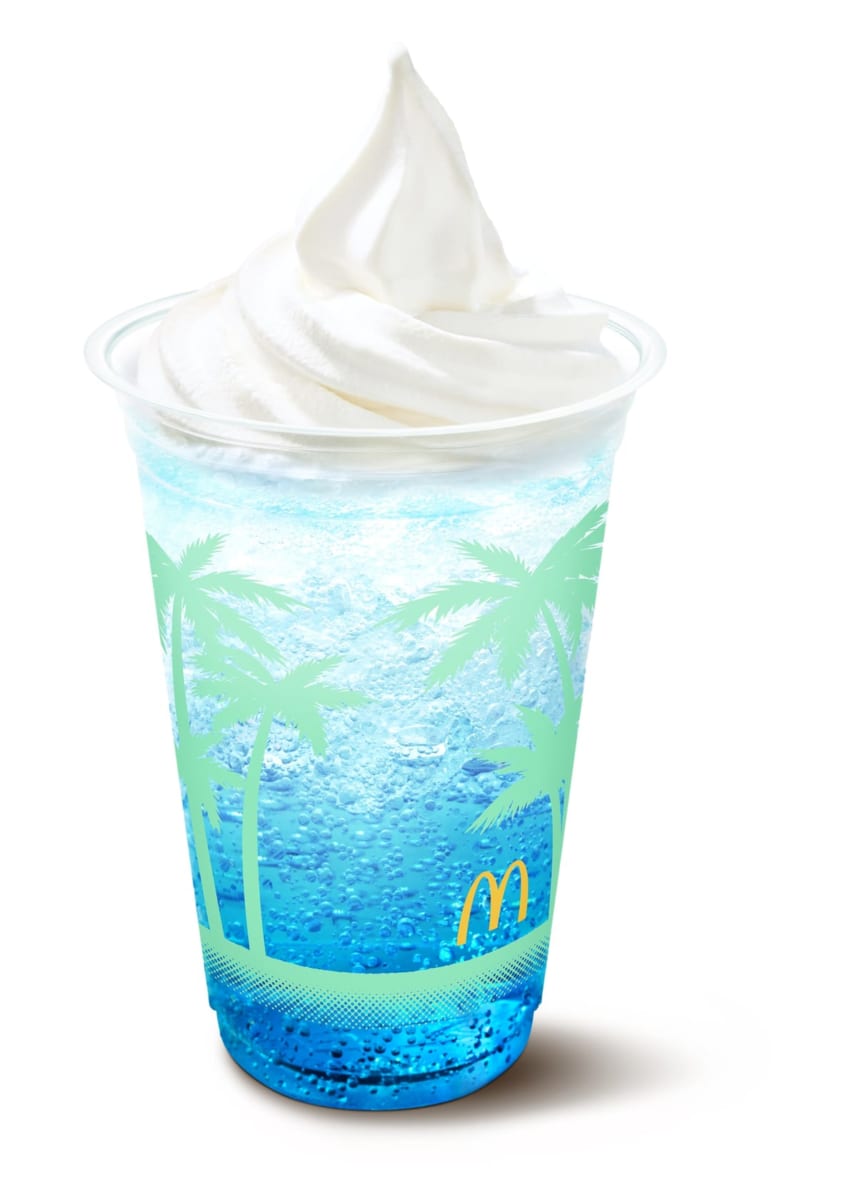 「マックフィズ ブルーハワイ」に、なめらかでコクのあるソフトクリームをトッピングした「マックフロート ブルーハワイ」