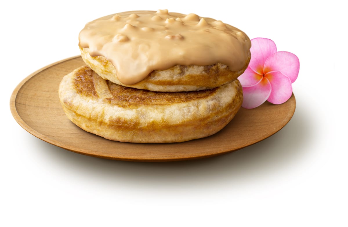 あたたかいメイプル風シロップ入りパンケーキに、クラッシュした香ばしいマカダミアナッツを入れた「ハワイアンパンケーキキャラメル&マカダミアナッツ」