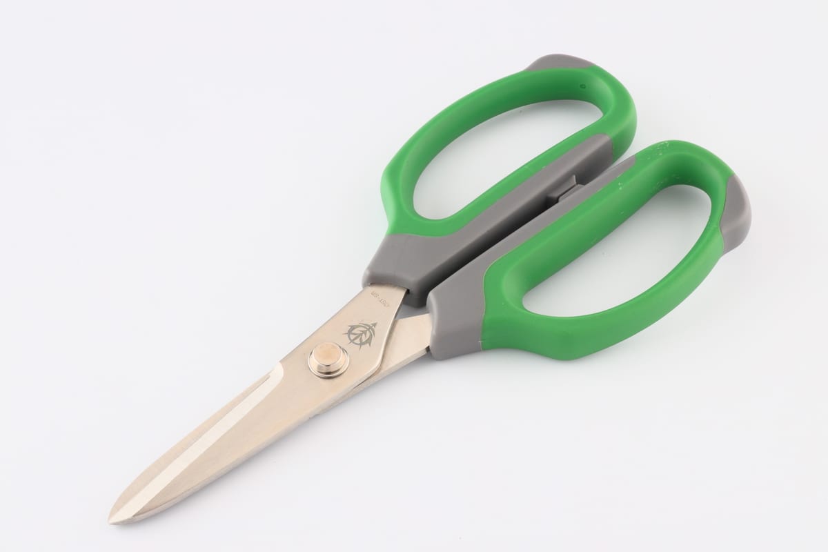 ゴム素材でやや大きめのグリップは、硬い素材を切る時にも指を痛めにくく、手袋をはめた状態でも使うことができます。