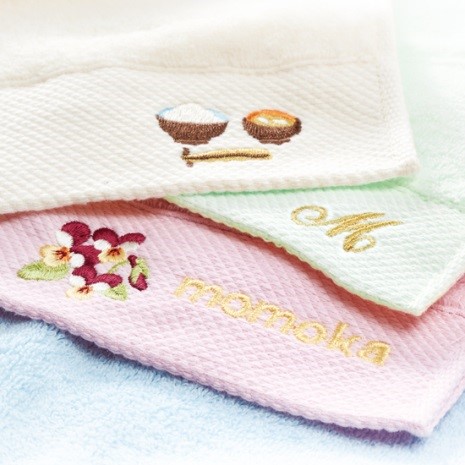 タオルに手頃な価格でオリジナルモチーフ刺繍が施せるサービスです。