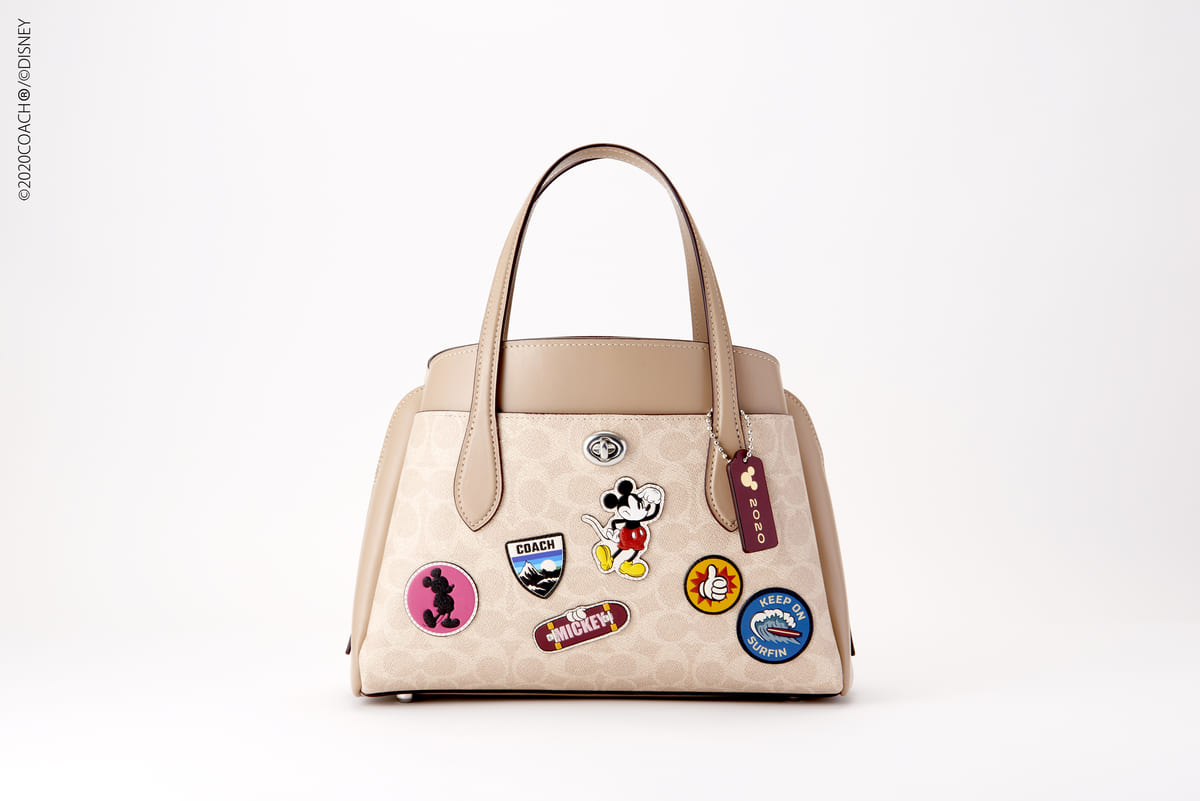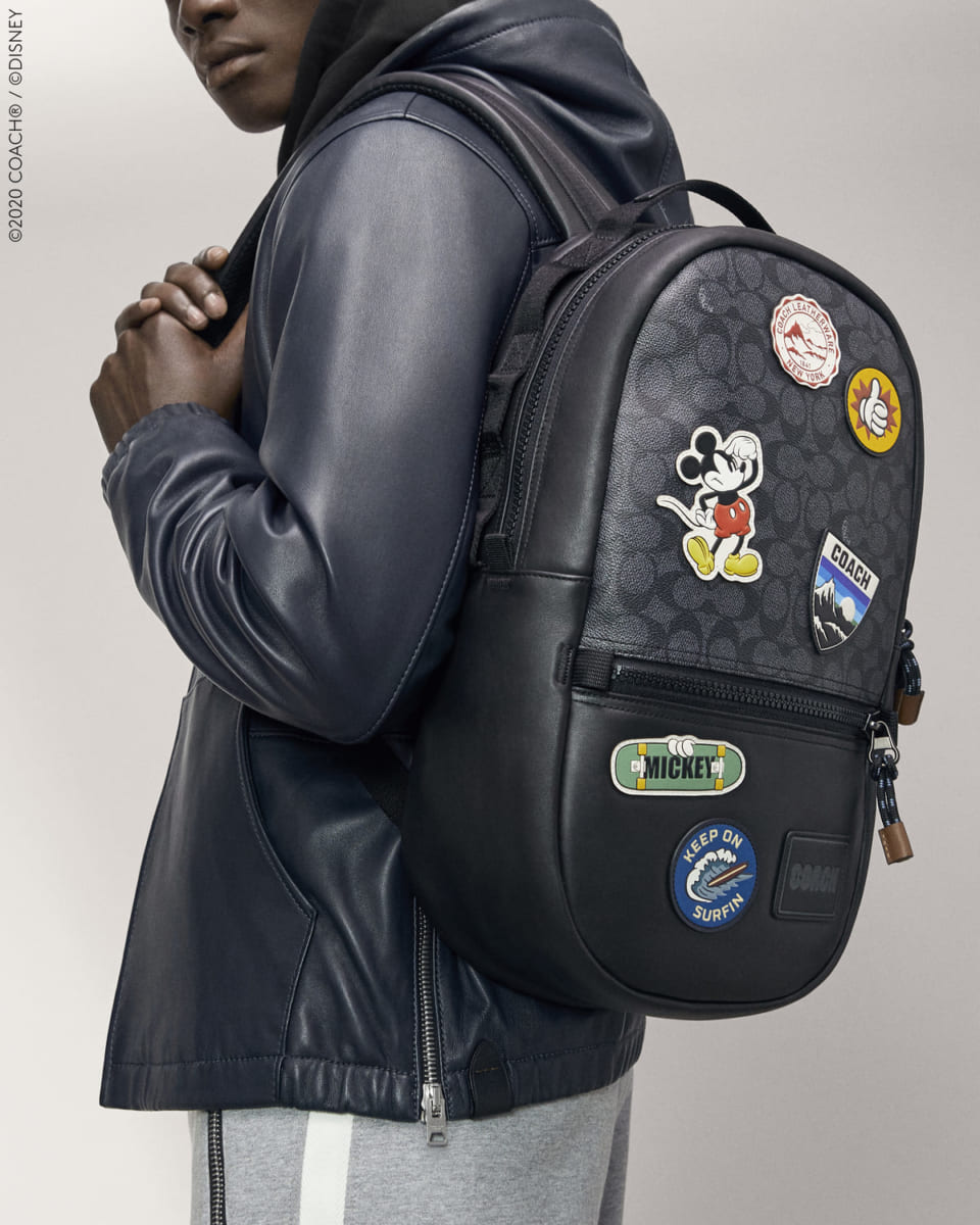また、コーチのアイコニックなシグネチャーパターンにディズニーのオリジナルスケッチがあしらわれ、カラフルなパッチとミックスされることで、アメリカを代表する2つのアイコンが新たなスタイルで融合しています。