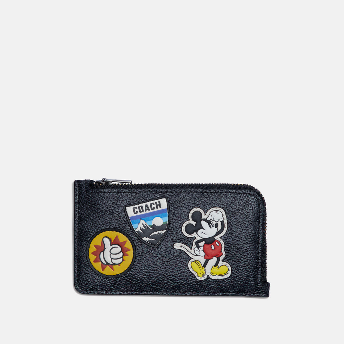 Men's「DISNEY × COACH Lジップ カード ケース シグネチャー キャンバス ウィズ スポーツ パッチ」