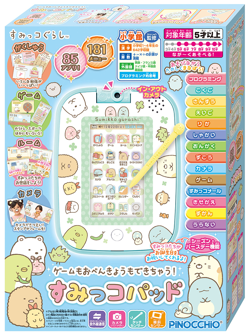 「すみっコ」たちとたっぷり遊んで学べる、夢中になれるカメラ付きパッド!