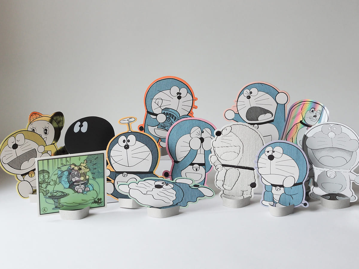 金紙製の「金のドラえもん」、銀紙製の「銀のドラえもん」、ホログラム紙製の「きらきらドラえもん」など特殊紙を仕様したもの、角度によって絵柄が変わる「思い出のドラえもん」まで、盛りだくさんです。