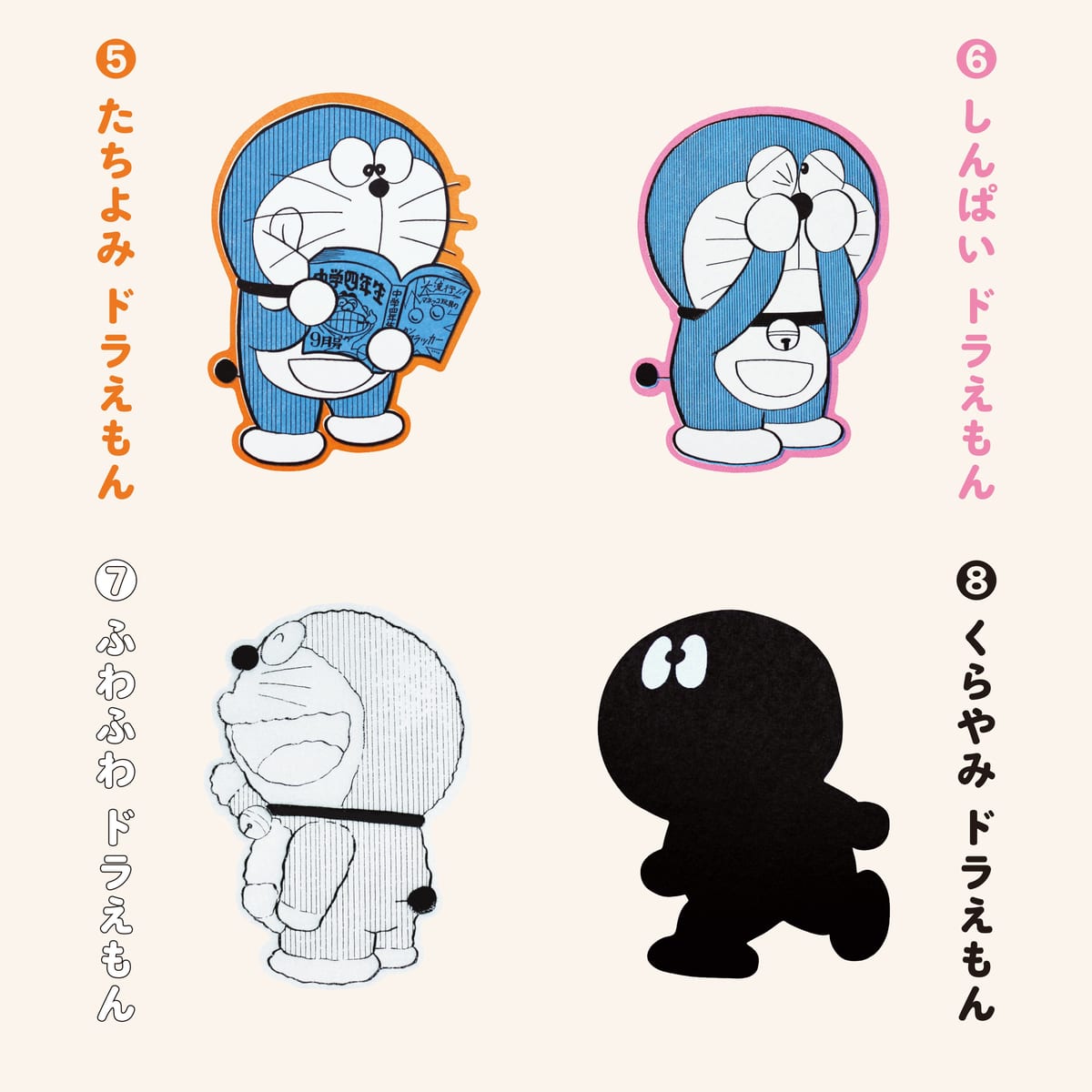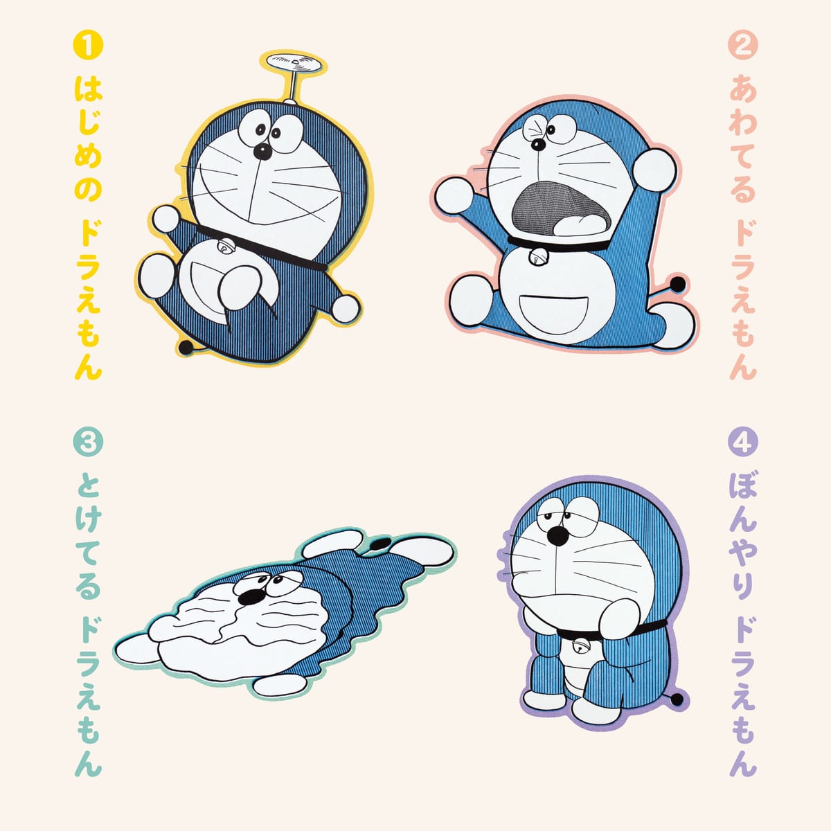 『ドラえもん』の原作コミックから厳選されたユニークなイラストが魅力の「はじめのドラえもん」「あわてるドラえもん」「とけてるドラえもん」「ぼんやりドラえもん」「たちよみドラえもん」「しんぱいドラえもん」は、ポップにカラーリングされています。